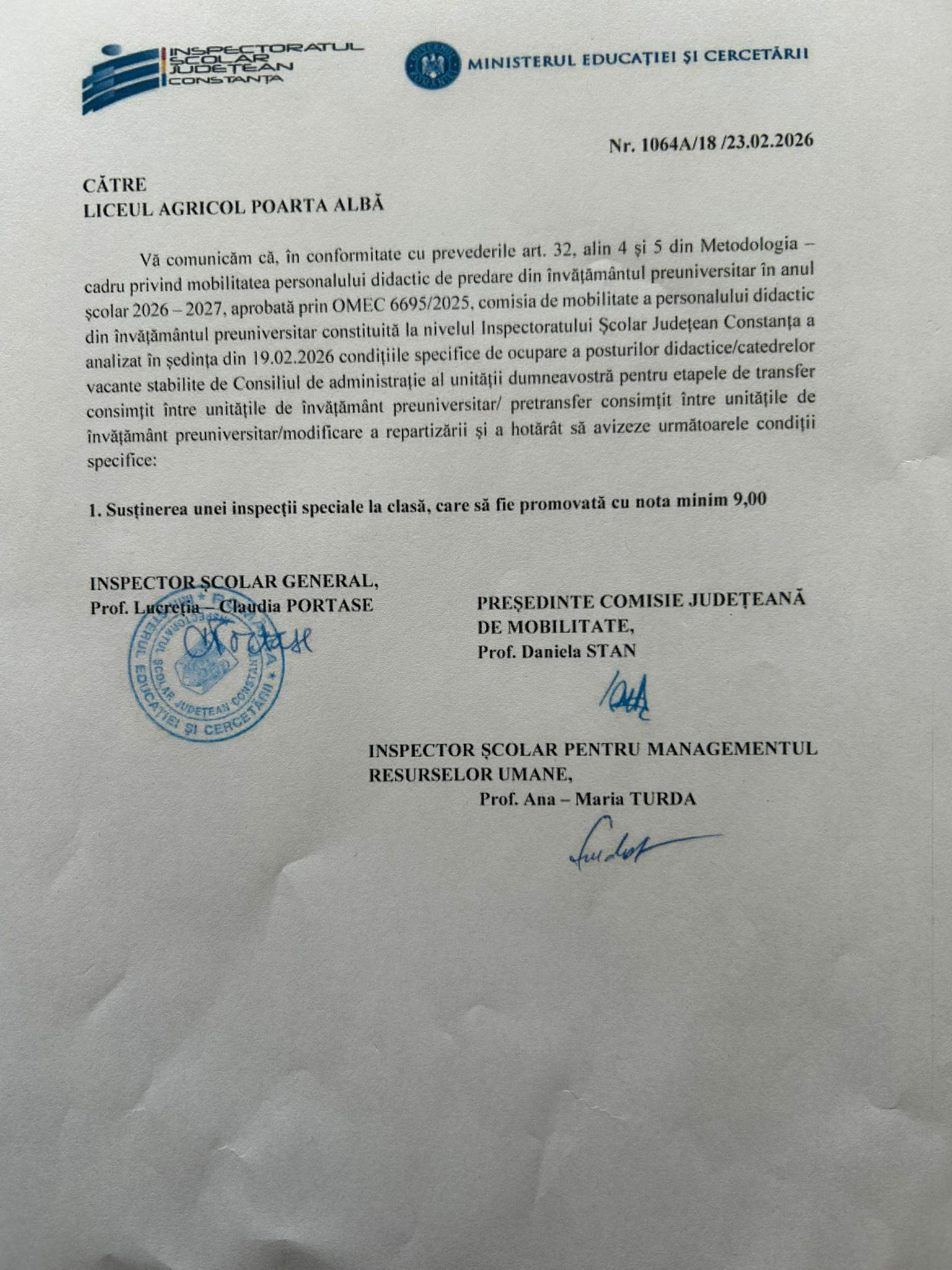 Ne asumam intreaga responsabilitate pentru dezvoltarea invatamantului Liceului Agricol Poarta Alba, urmarind continu interesul beneficiarilor nostril si dovedind respect pentru lege, cultura si pentru comunitatea in care traim.